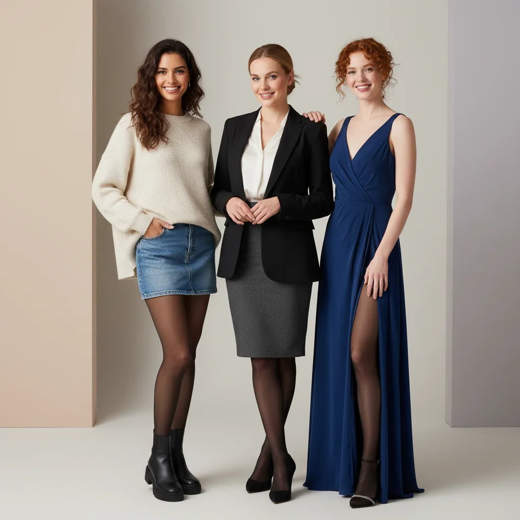 Sheer outside, cozy inside. The outer knit looks sheer while the inner lining keeps warmth in, giving you that bare-leg illusion with real comfort.